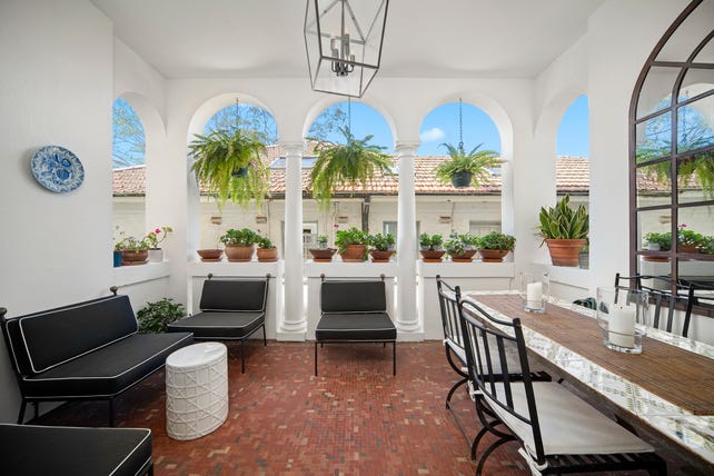 - Peaceful Mediterranean-style balcony with decorative columns